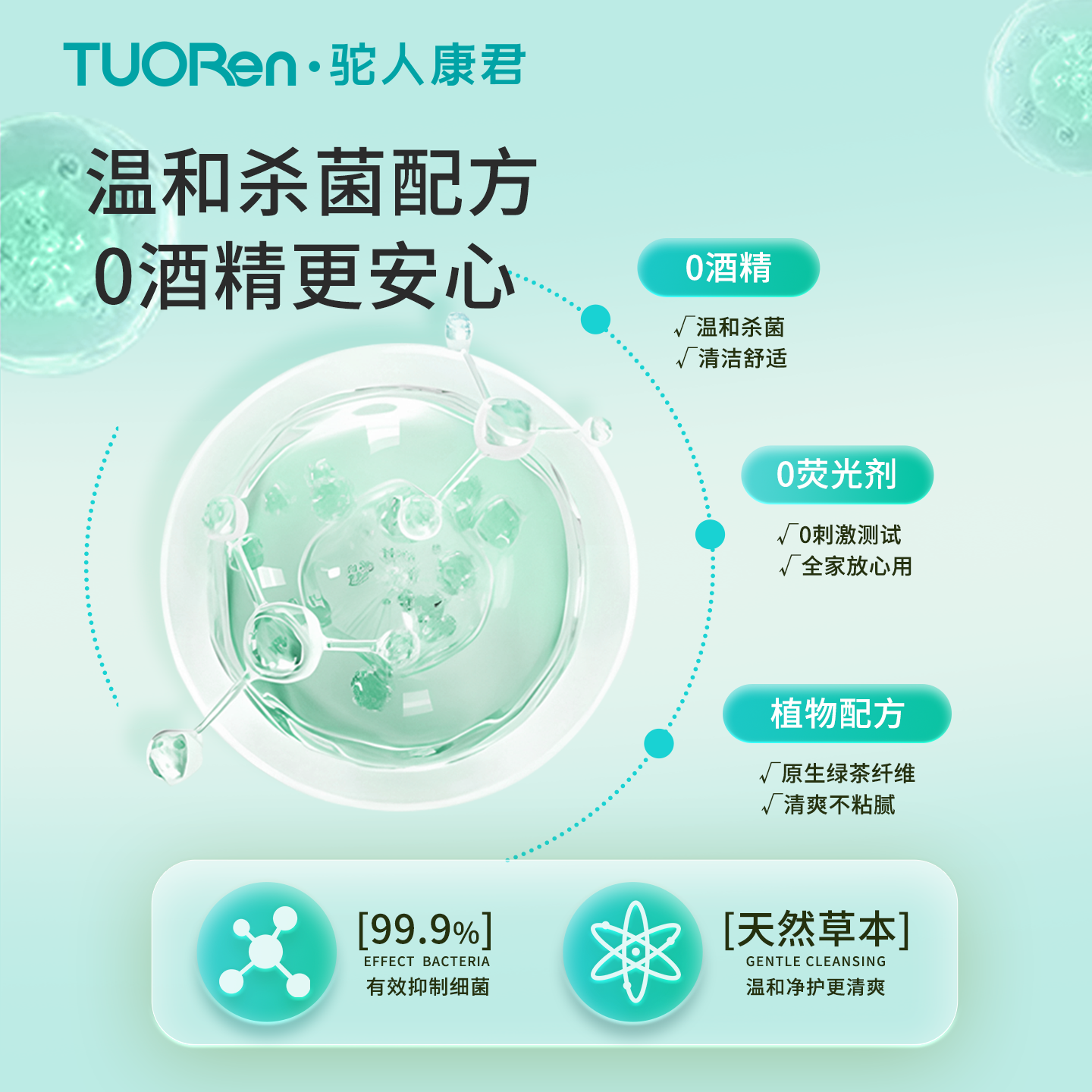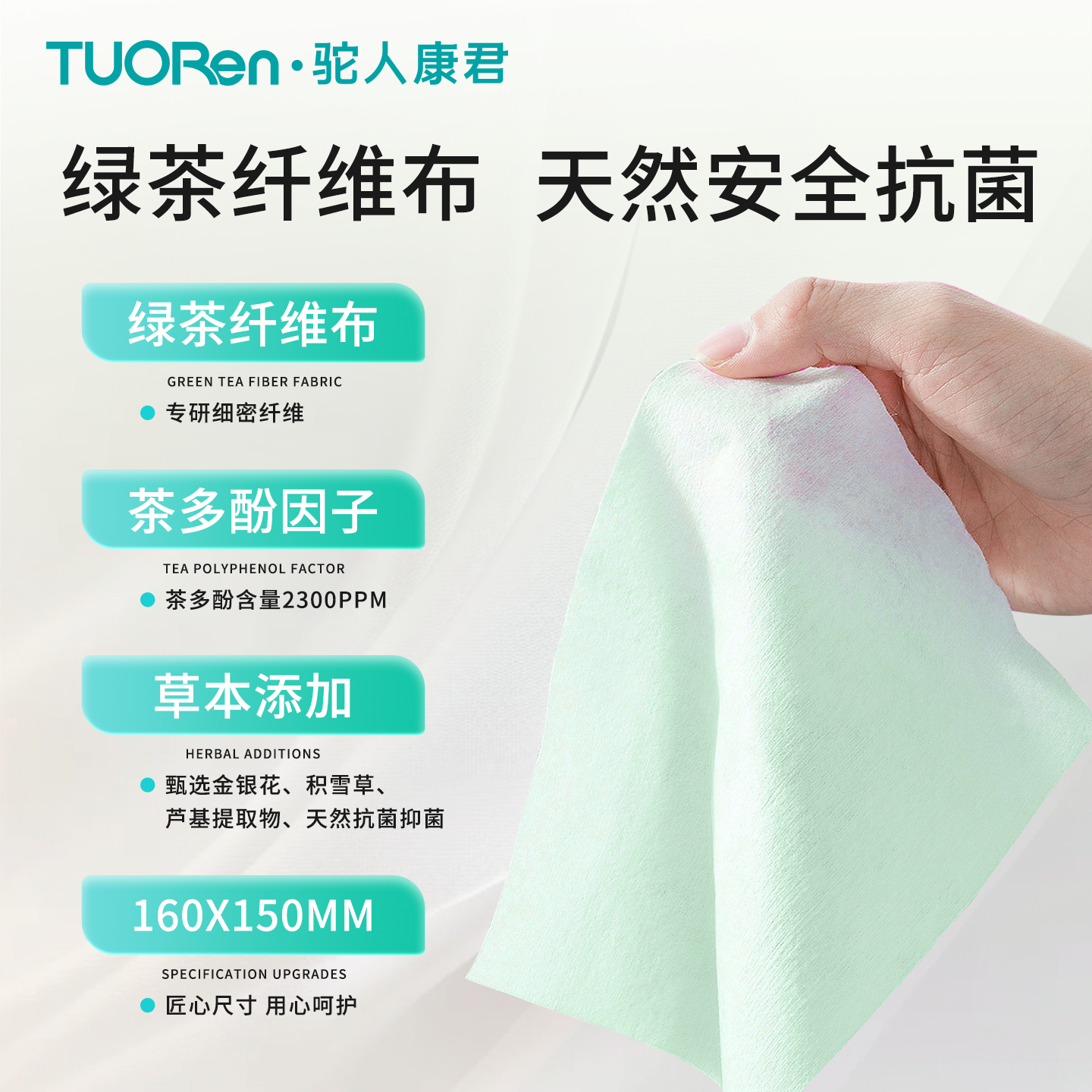 【真正有效的家庭防护】 经实验室检测,有效灭活99.9%病毒,包括: 甲流H1N1病毒、肠道病毒EV71(手足口病)、肺炎支原体、乙型流感病毒 同时有效抑制99.9%细菌真菌,守护全家健康 【温和安心,全家适用】 0酒精、0荧光剂、0刺激 植物配方:绿茶纤维布 + 茶多酚净护 添加金银花、积雪草提取物,滋润更贴肤 儿童、孕妇、敏感肌皆可放心使用 【迷你便携,随时防护】 掌心大小,随取随用 外出就餐前清洁手部 儿童玩具、餐具快速清洁 电梯按钮、门把手擦拭 办公健身,随手清洁