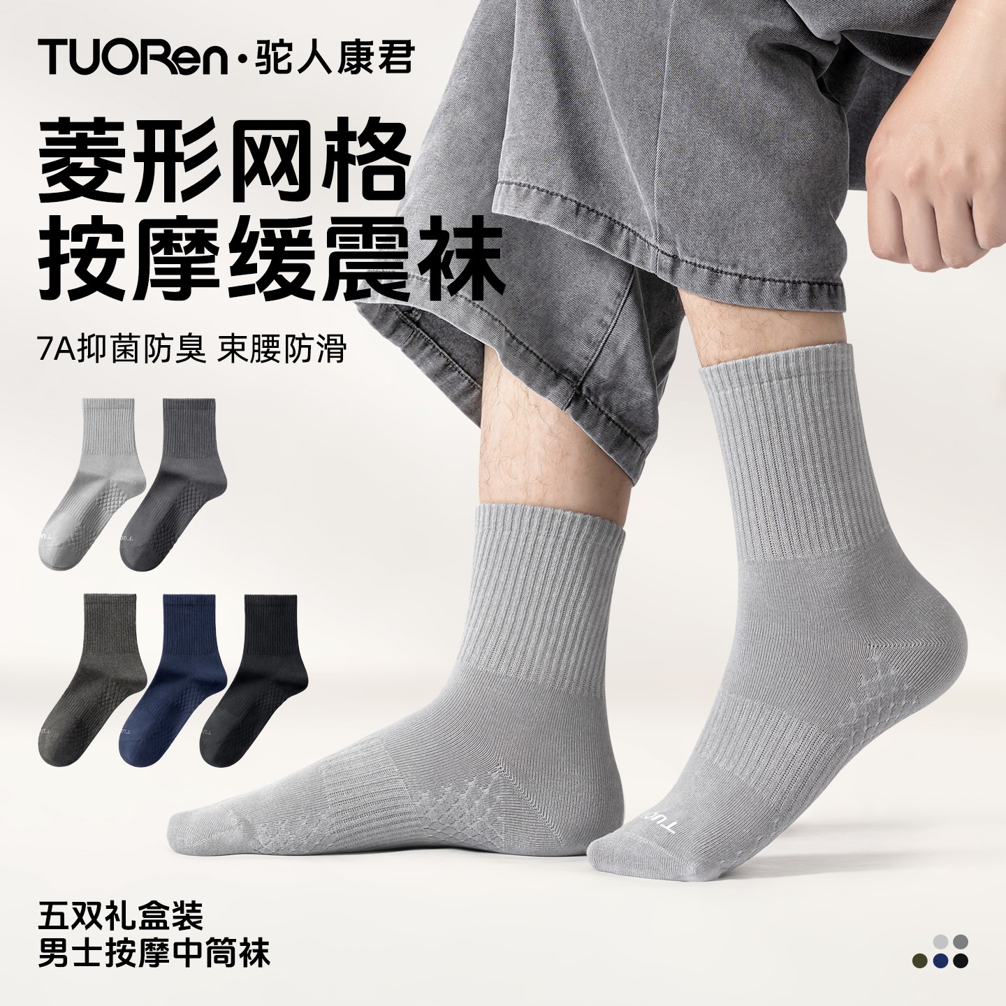 抗菌除臭袜男士(M126菱形网格按摩底缓震袜)