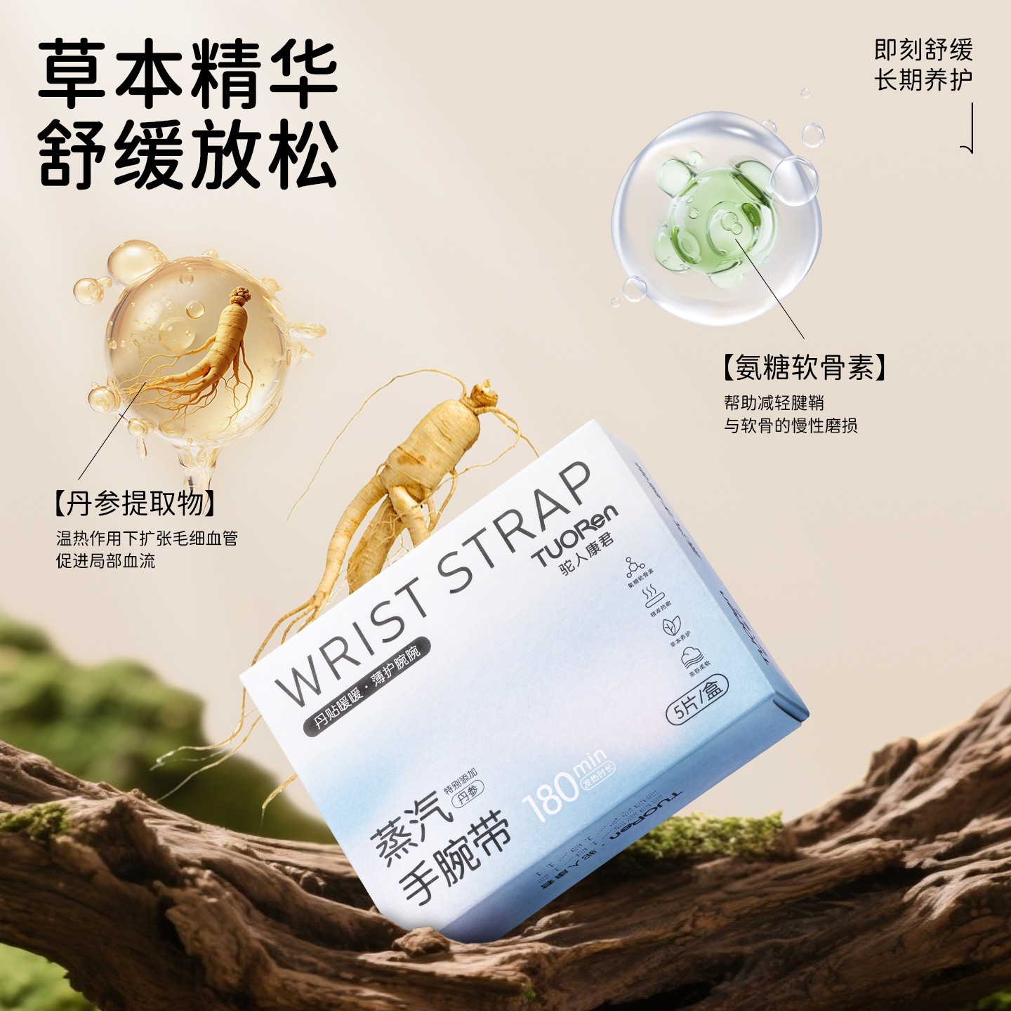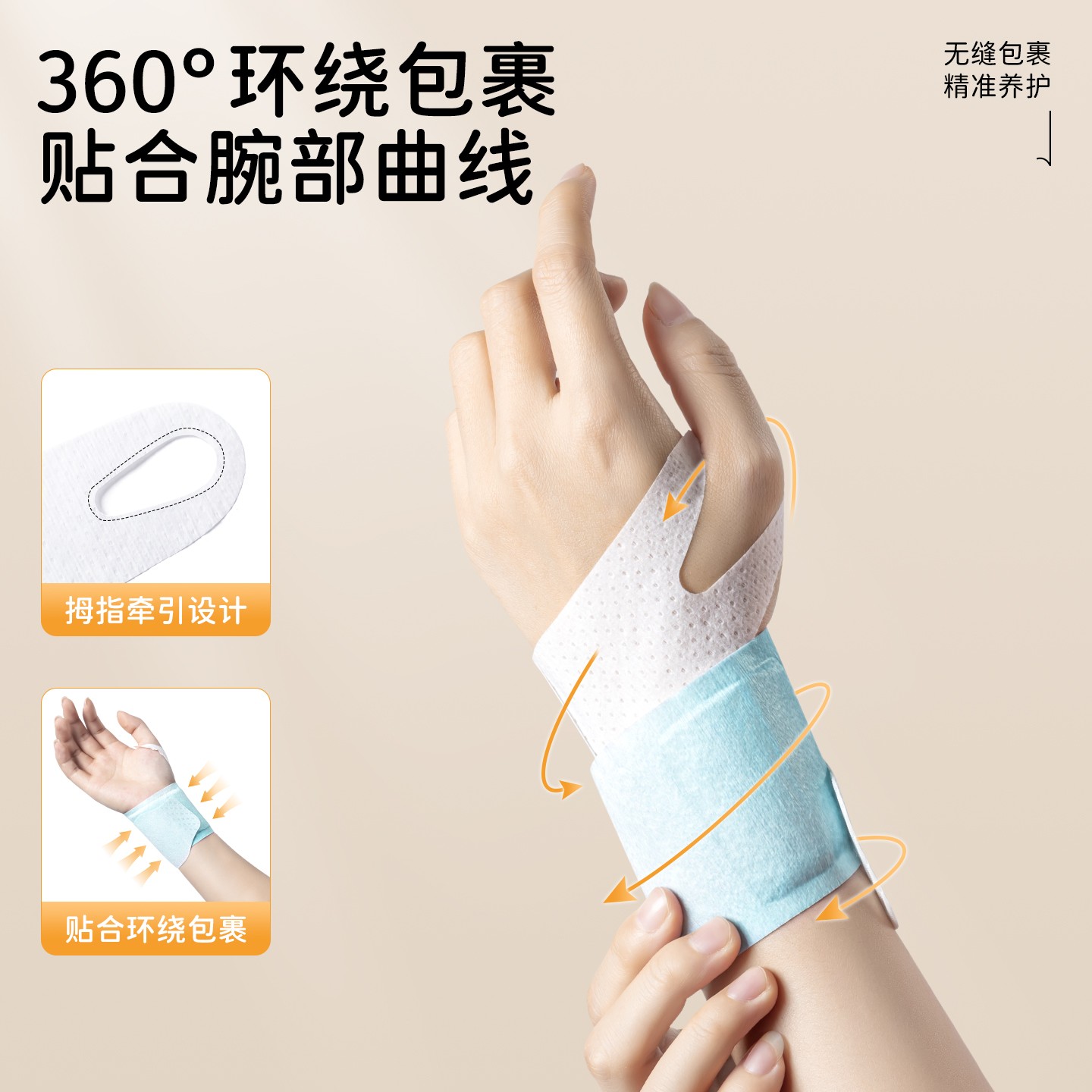 【恒温热敷】 不低于42℃蒸汽热力, 持续3小时以上舒缓酸痛、促进循环。 【活力双养】 融汇丹参活血与氨糖软骨素标本兼治, 有效疏通淤堵,营养软骨, 帮助手腕恢复活力与灵活。 【灵动贴合】 三段式超薄芯体,360°隐形贴合, 确保热力均匀渗透, 无死角舒缓手腕每一处酸痛。 比传统药贴更舒适,比热水袋更方便, 从短暂缓解到长效滋养,给手腕更专业的养护。